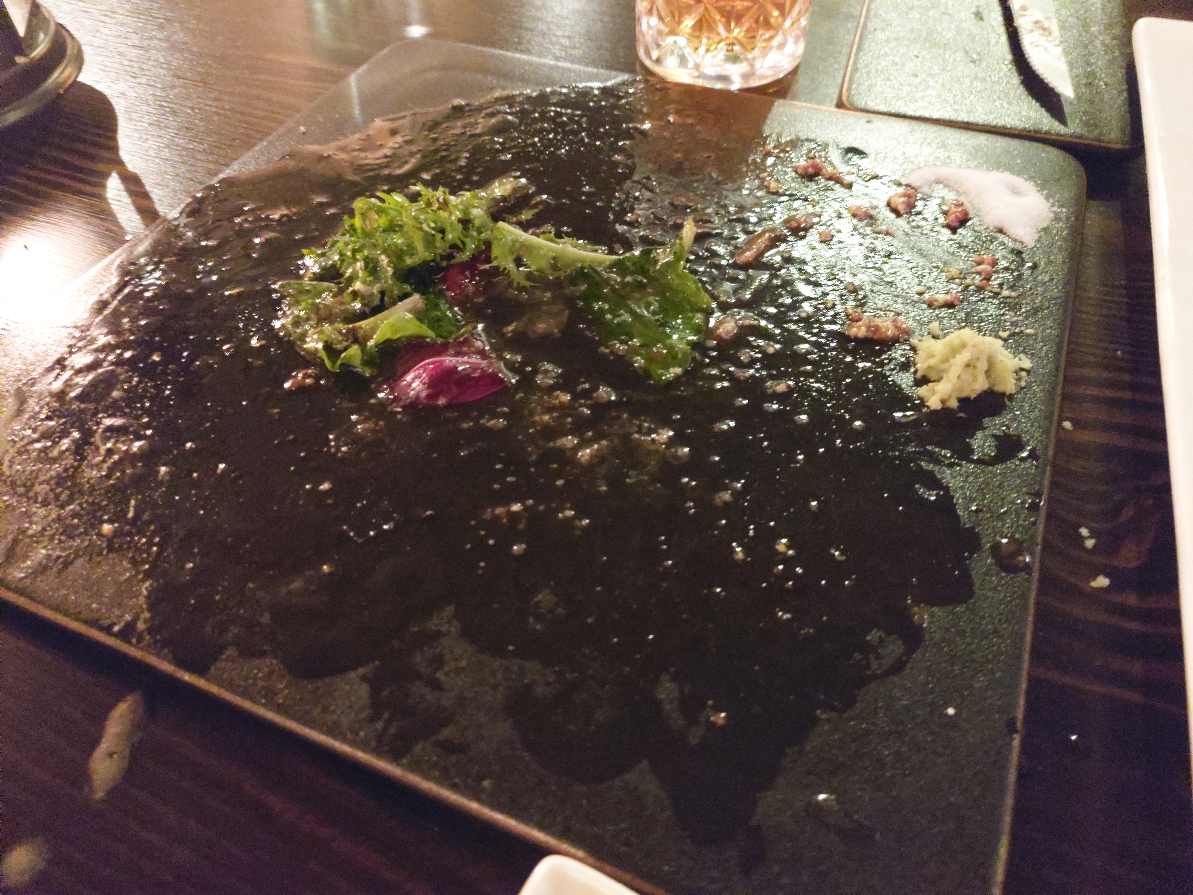 또한 옆에 있는 세 가지 소스 소금, 고추냉이, 홀그레인 머스터드를 같이 찍어 먹으면,