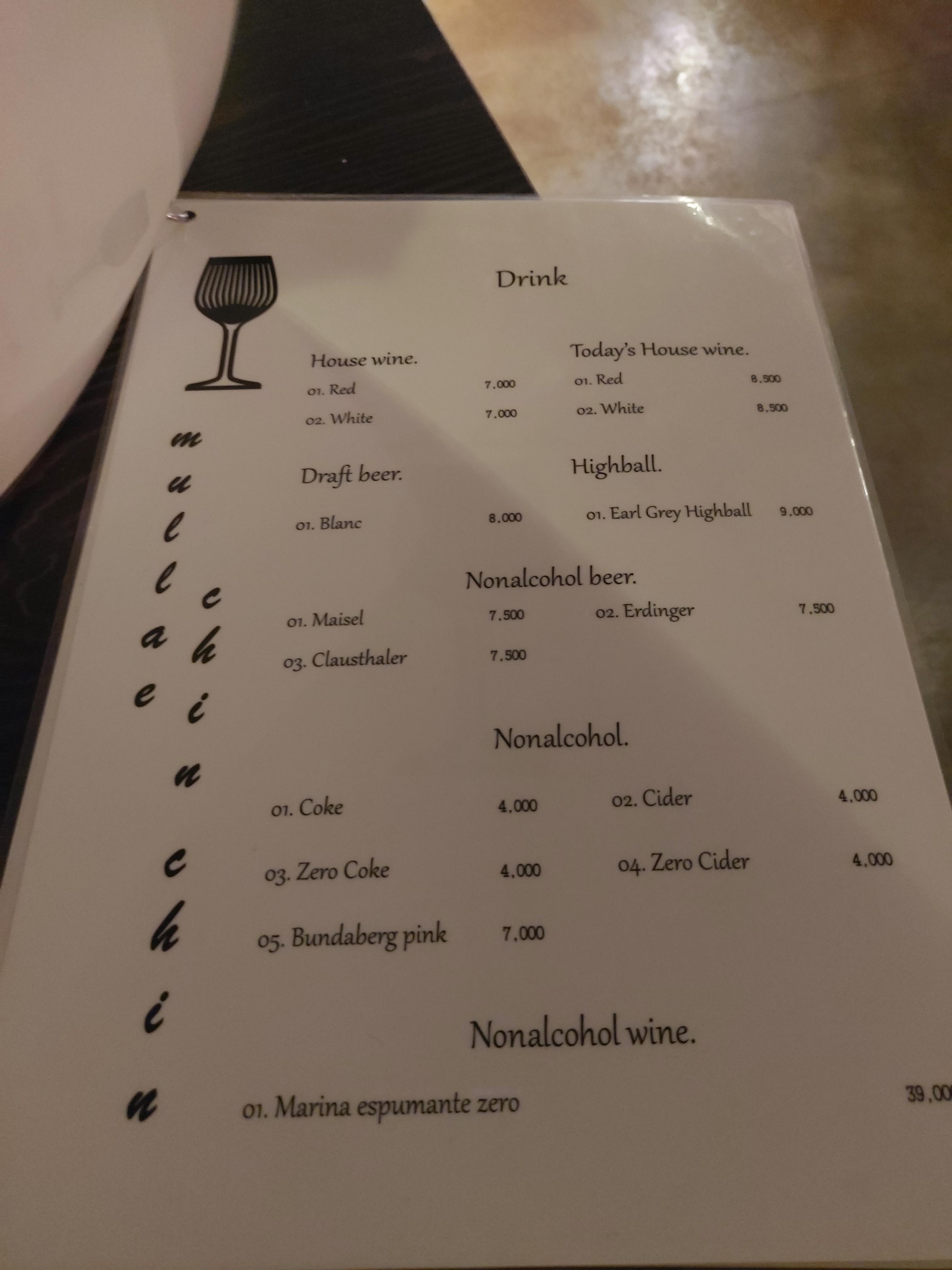 알코올이 없는 논 알콜 맥주와 와인, 생맥주, 하이볼, 음료까지 다양하게 구비되었습니다.