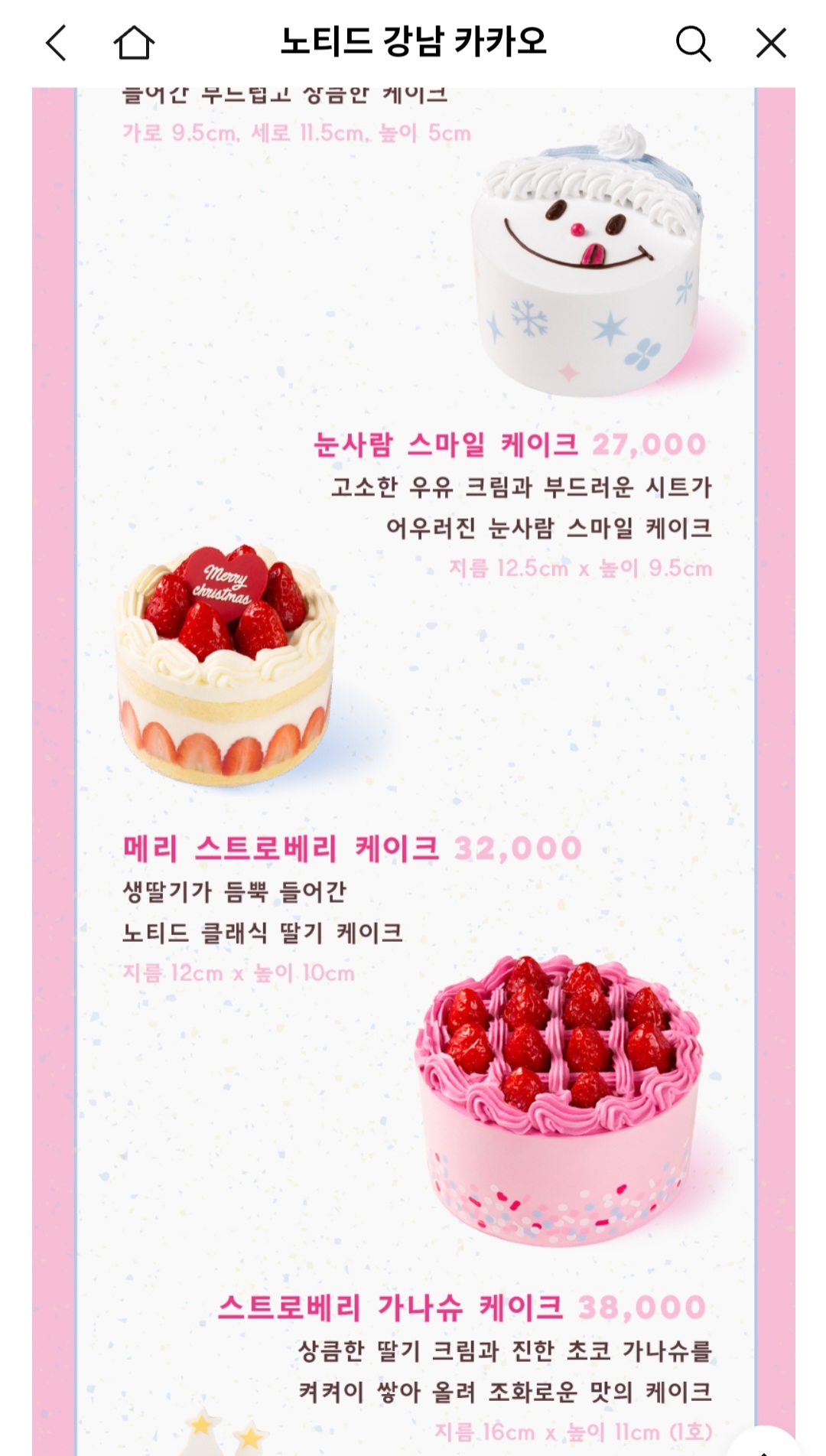 자 그럼 총 7개의 크리스마스 케이크를 살펴볼까요?
