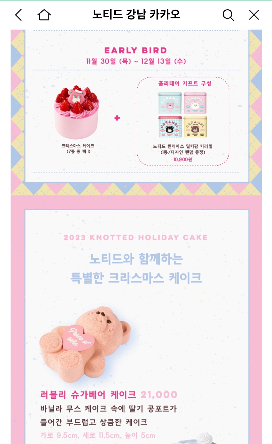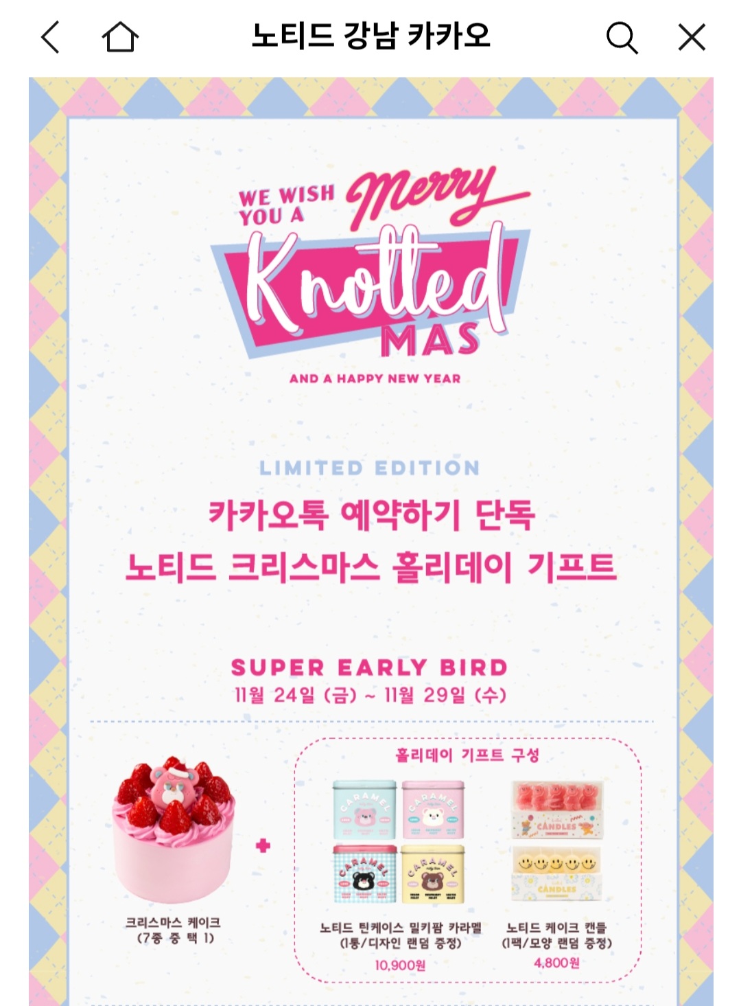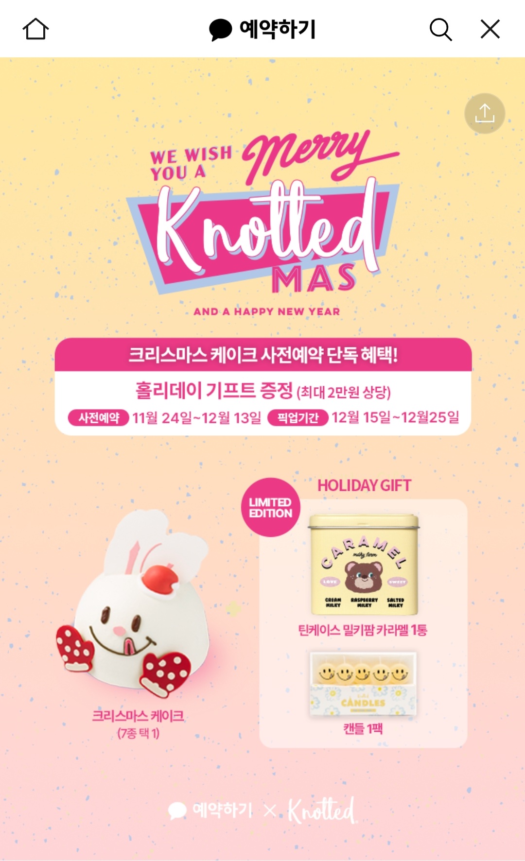 여기서 잠깐 크리스마스 케이크 사전 예약을 하시면 홀리데이 기프트를 받을 수 있습니다.