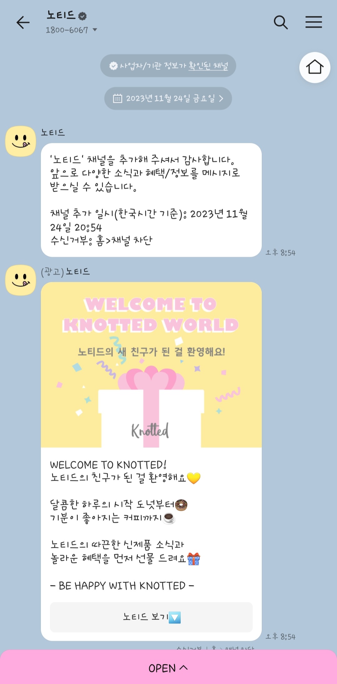 카카오톡으로 노티드 채널 추가를 하는 것입니다.