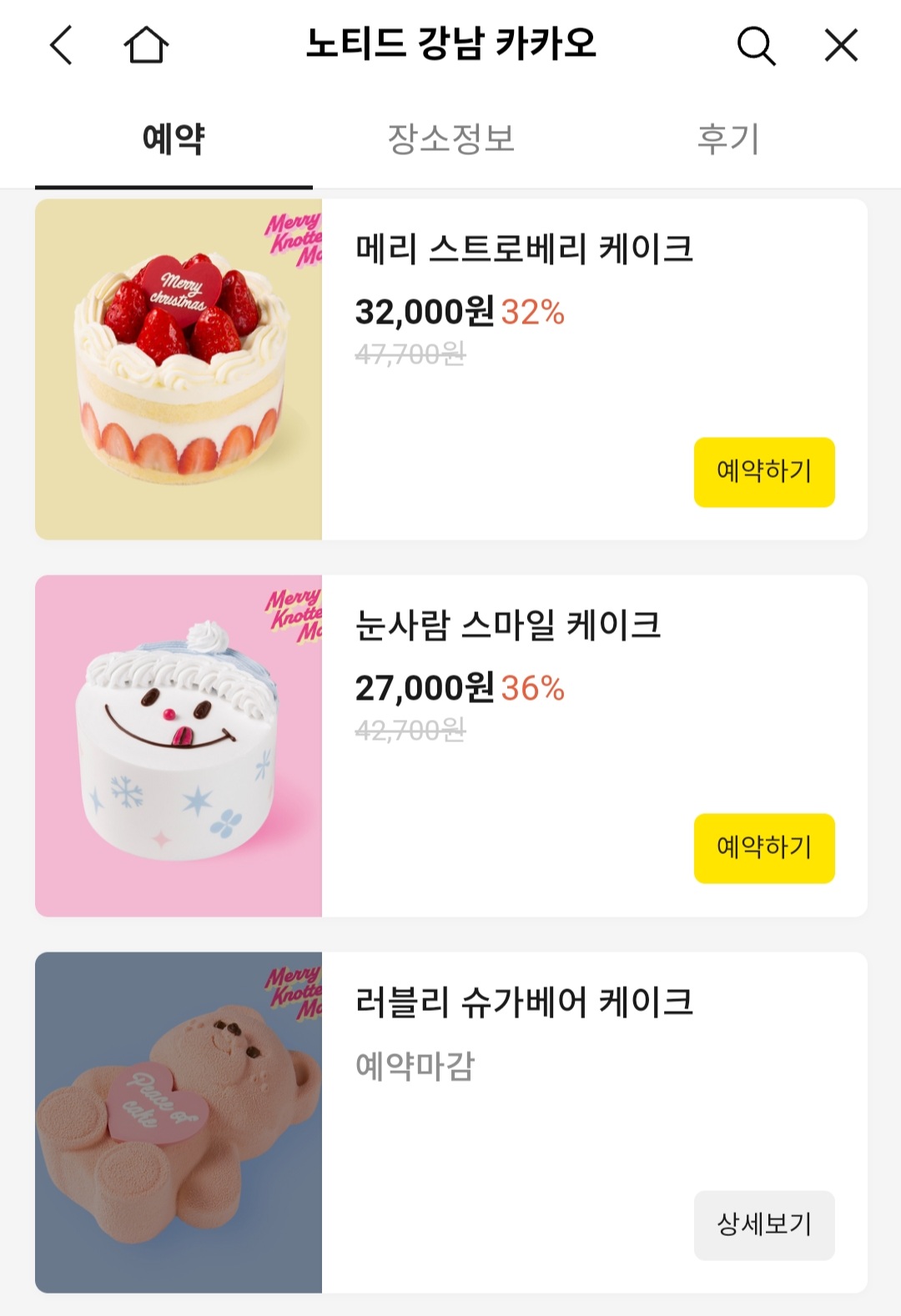 제일 많은 케이크답게 현재 예약 마감이 다 되어있는 상태입니다.