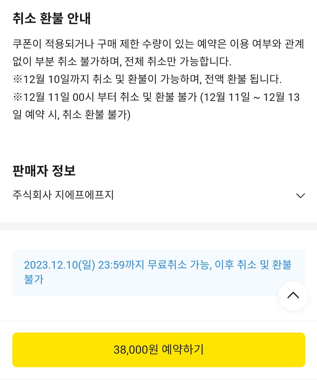 12월 10일까지만 전액 취소 환불이 된다고 하니 참고하시는 것도 좋겠네요.