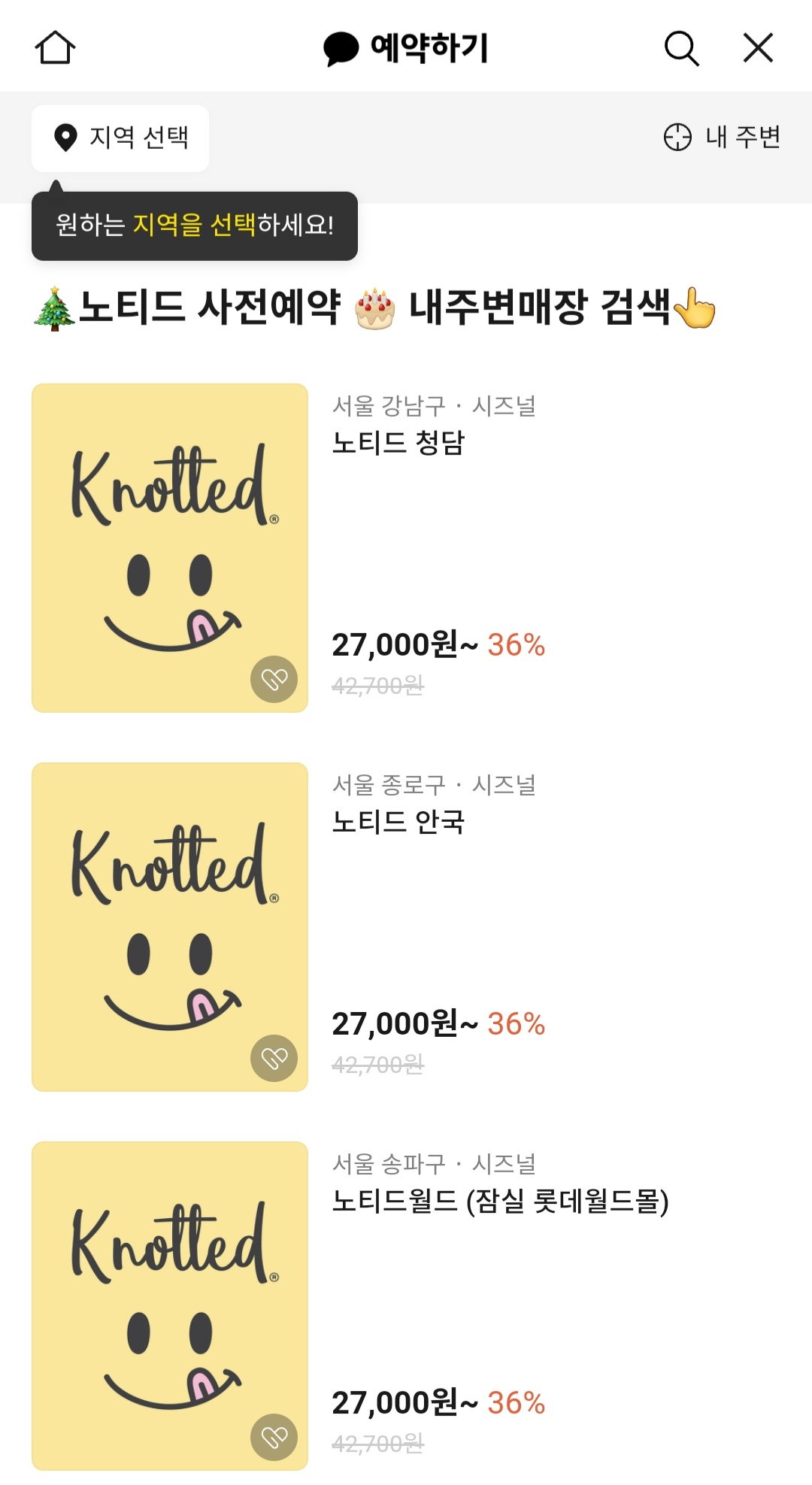 페이지를 아래로 쭉 내리시면 위치에 따른 노티드 매장을 선택할 수 있습니다.