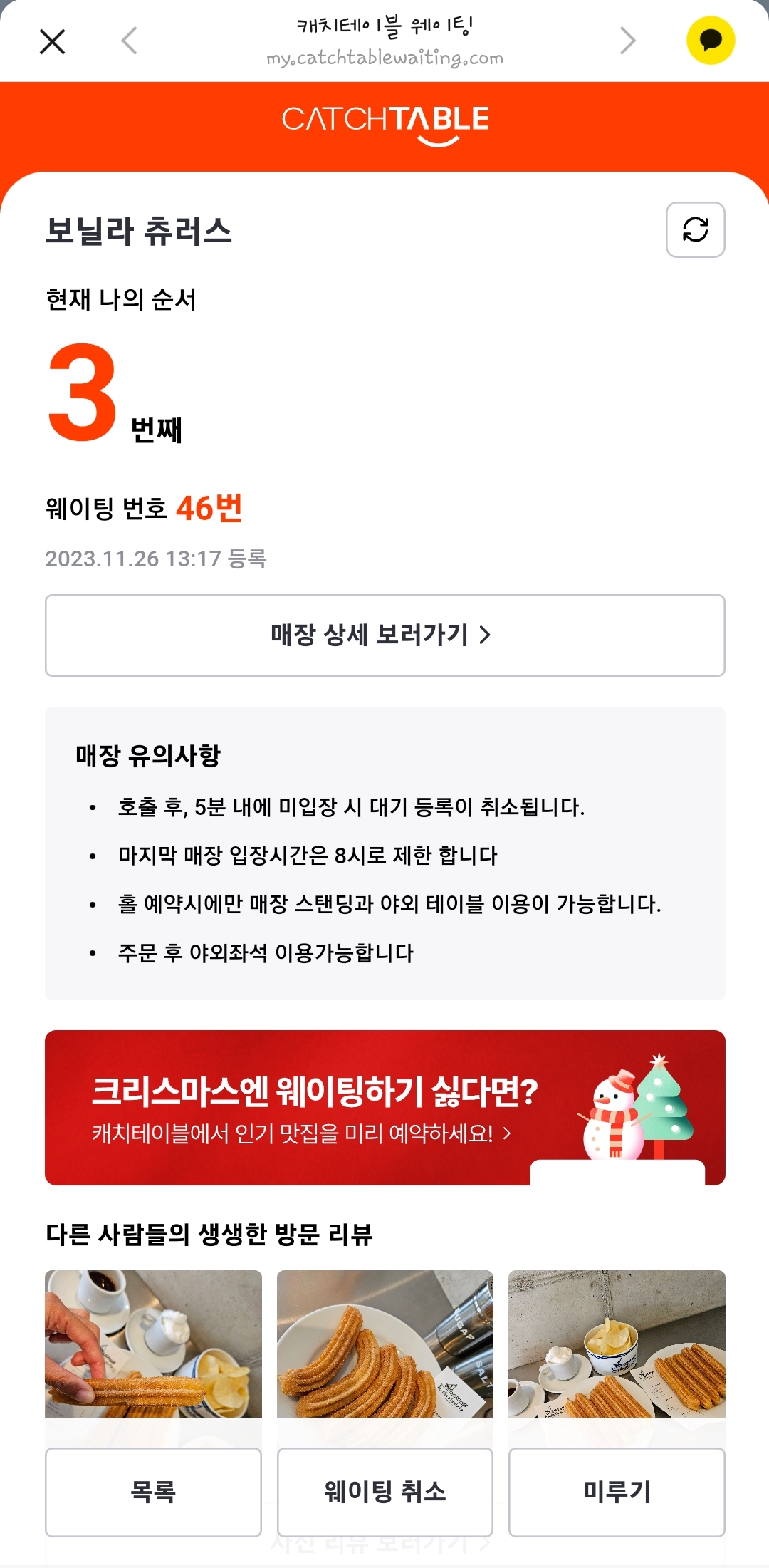 저희도 바로 캐치테이블을 통해 웨이팅을 했습니다.
