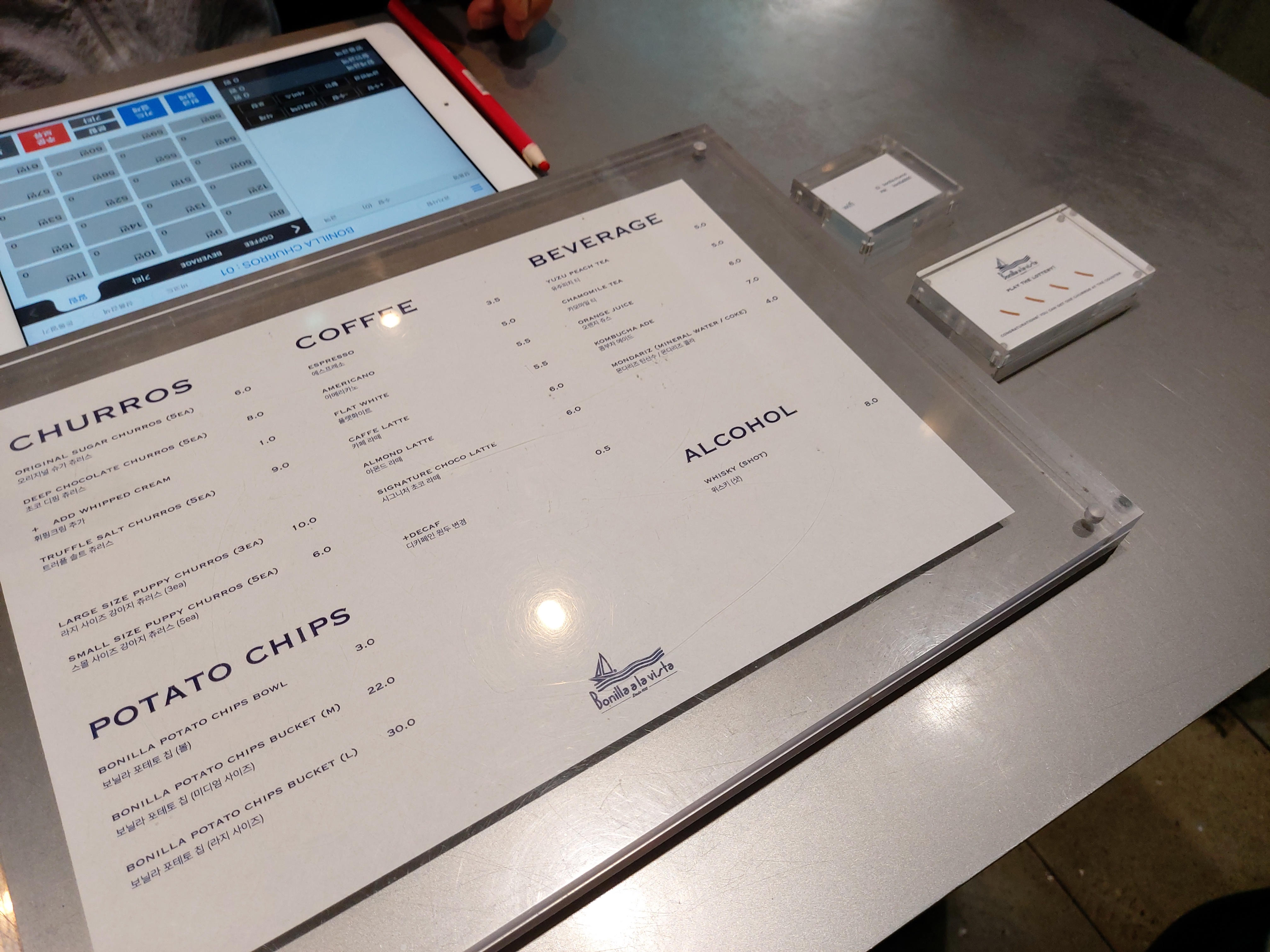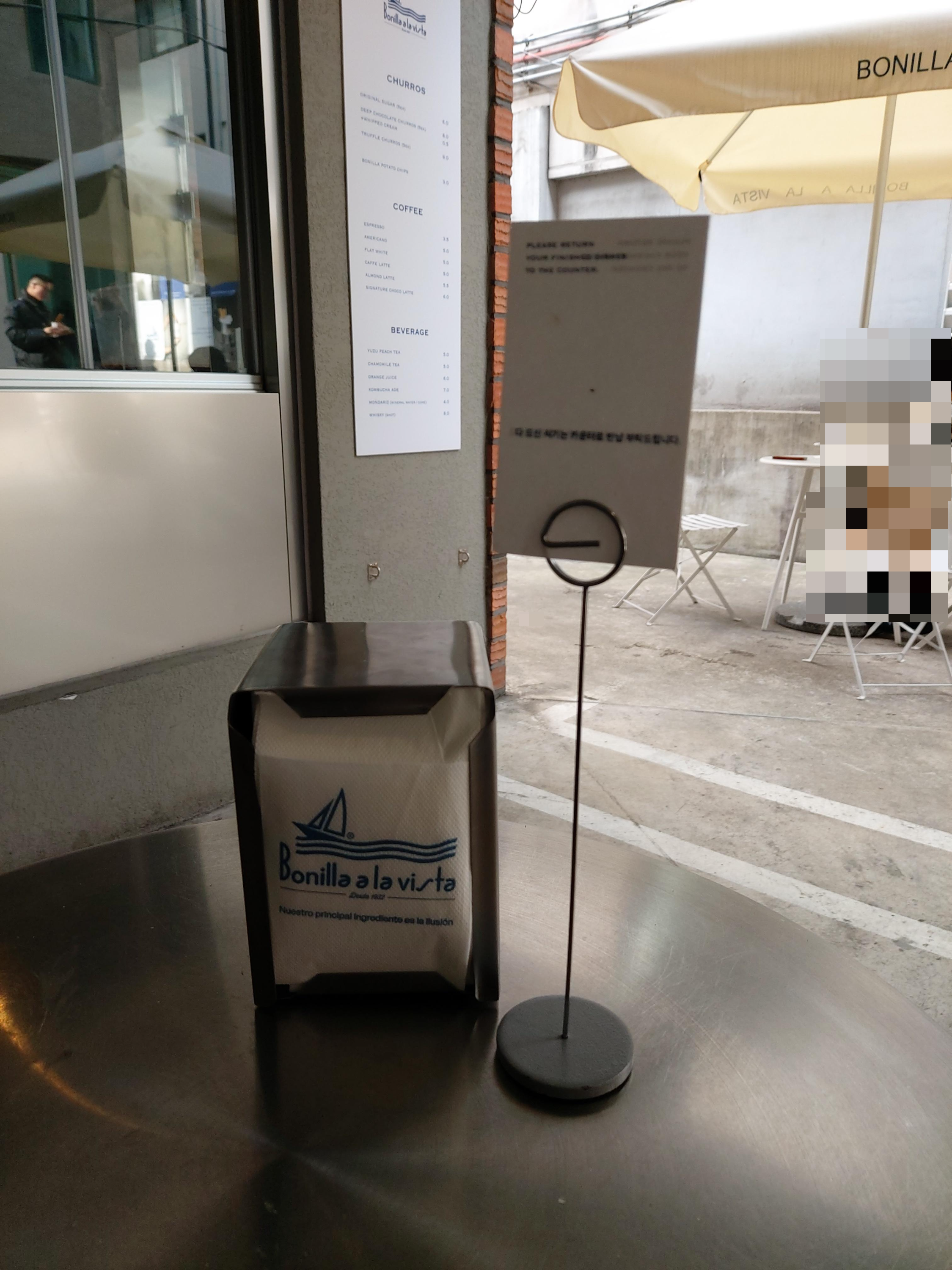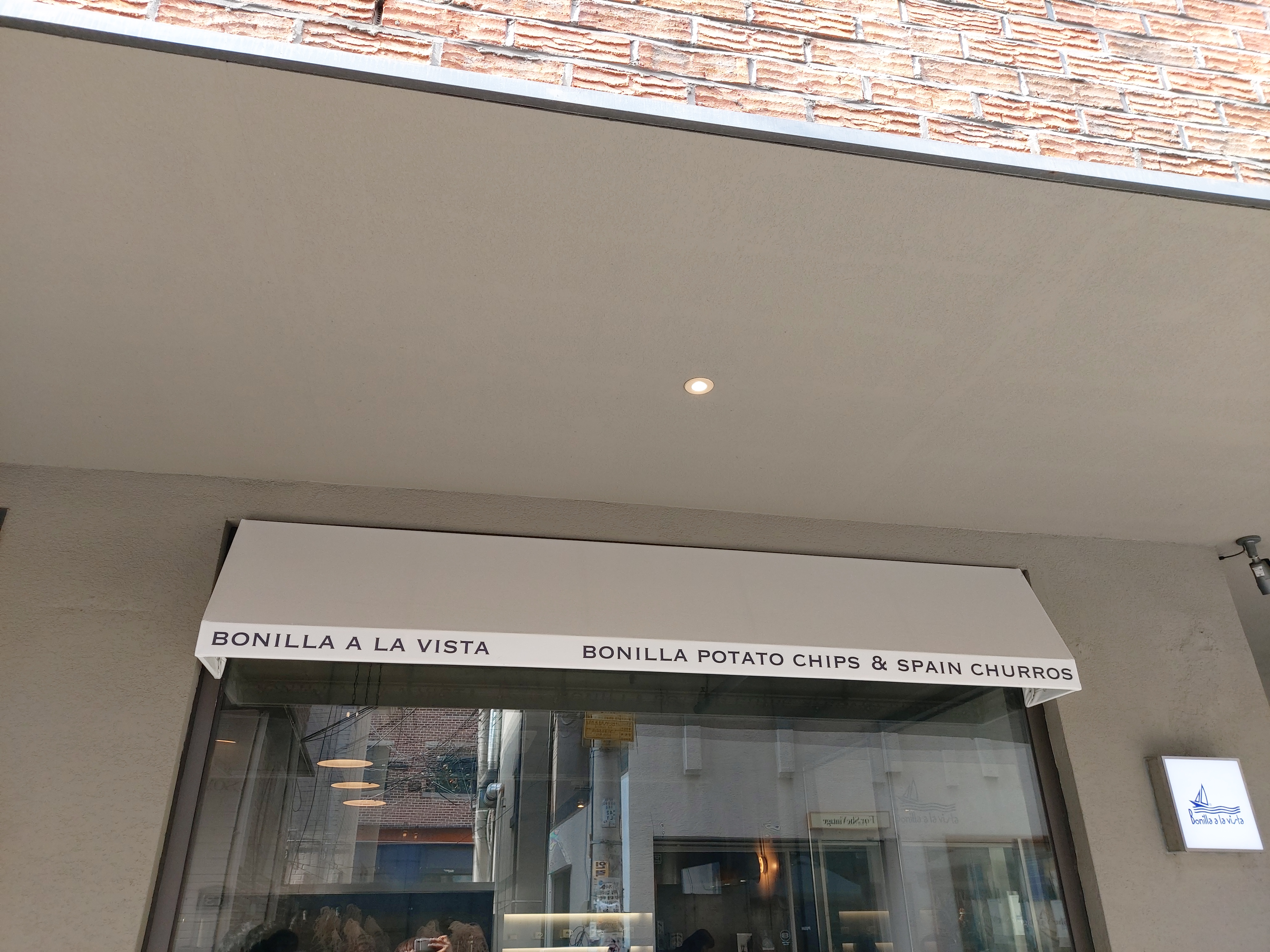 기둥에 붙어 있는 작은 간판으로 간신히 '보닐라츄러스'임을 확인할 수 있었습니다.