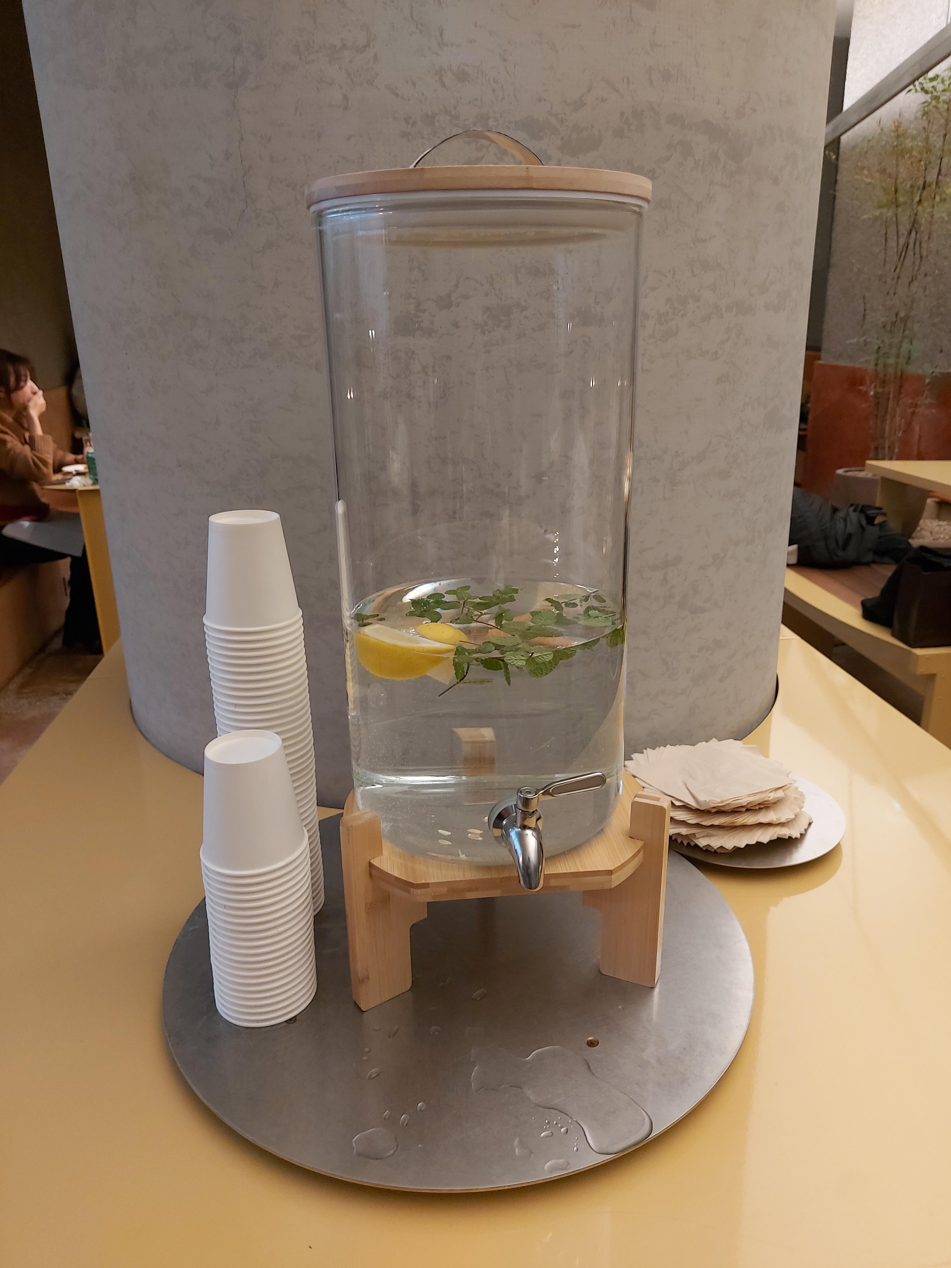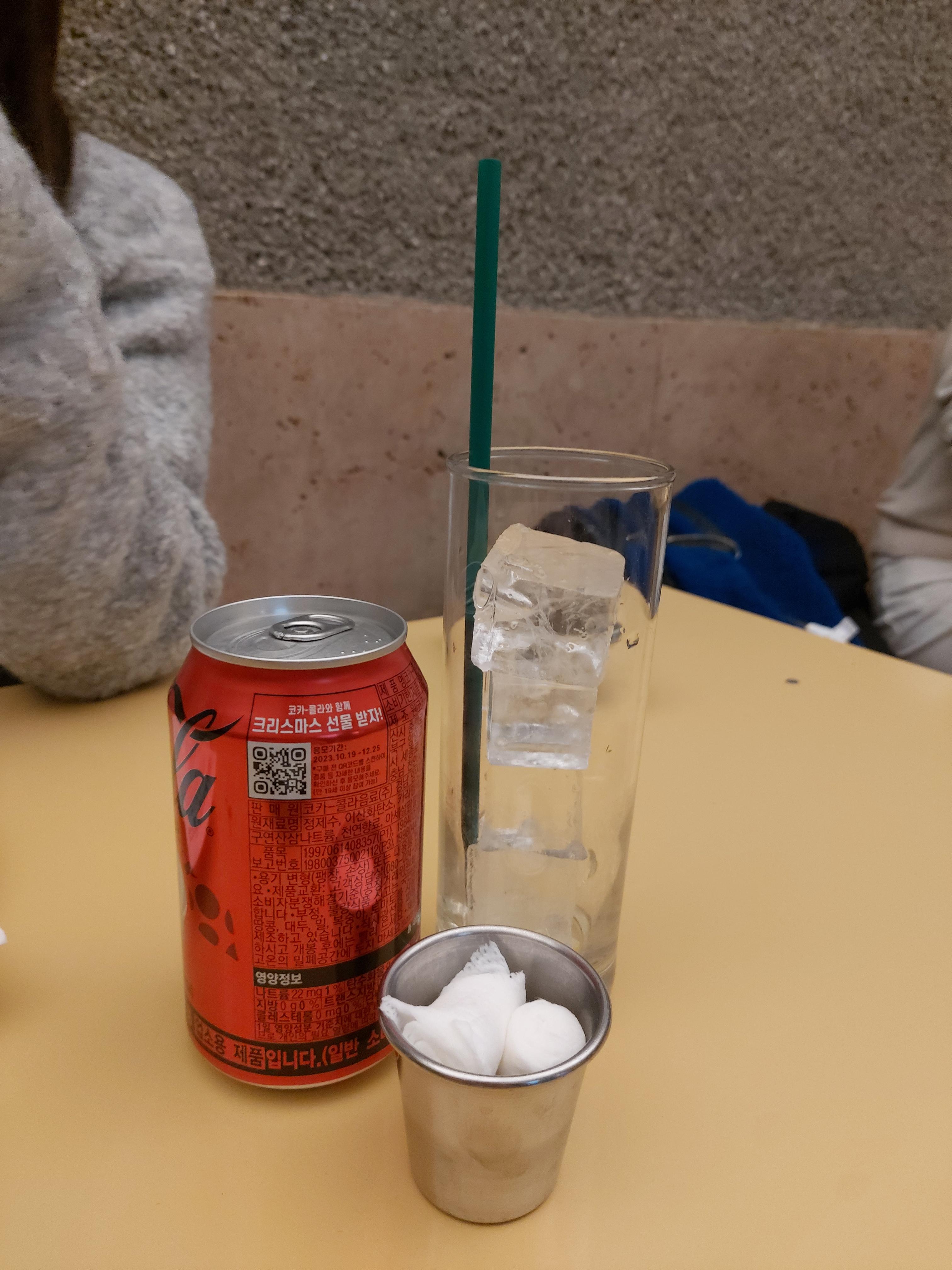 물은 매장 중간 셀프로 가져와 마실 수 있습니다.