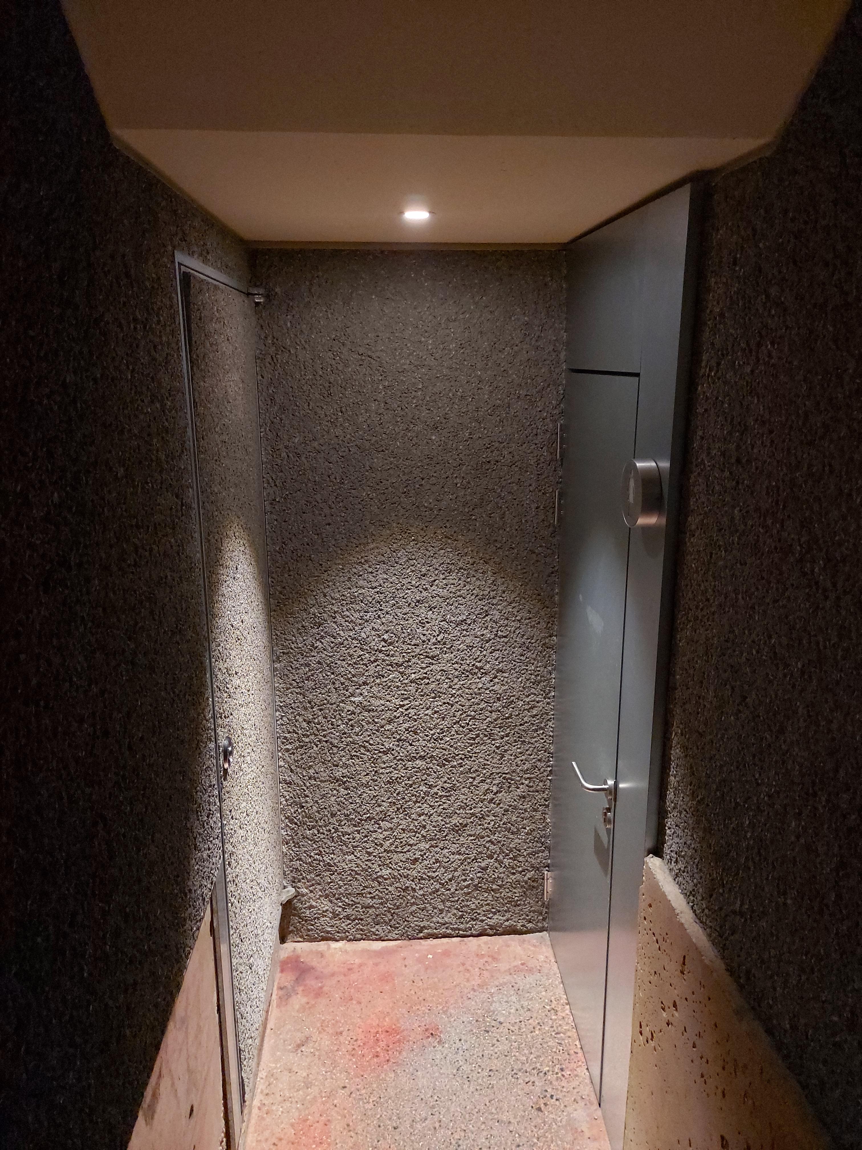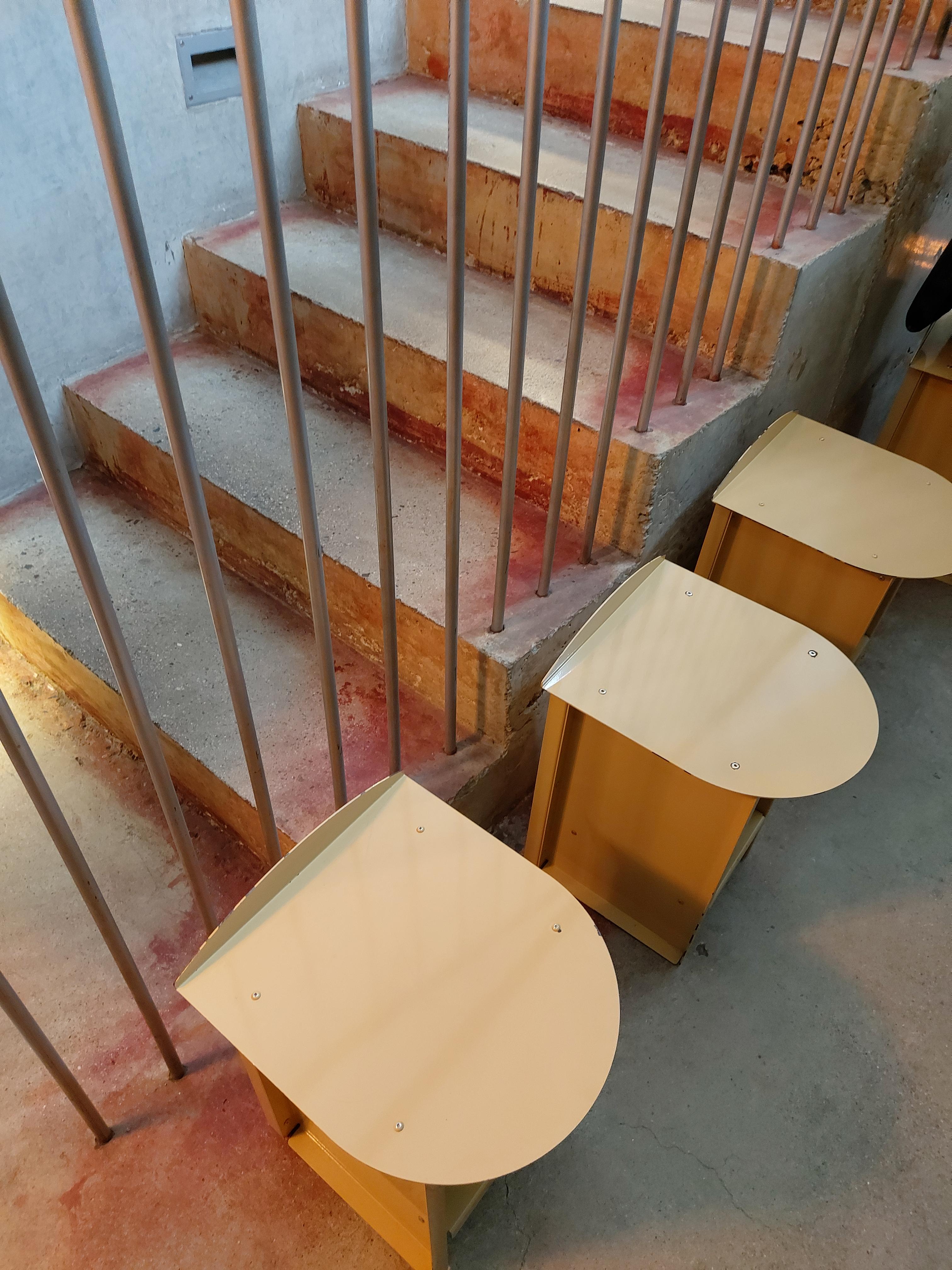 계단 아래쪽에는 앉아서 기다릴 수 있는 의자도 준비되어 있습니다.