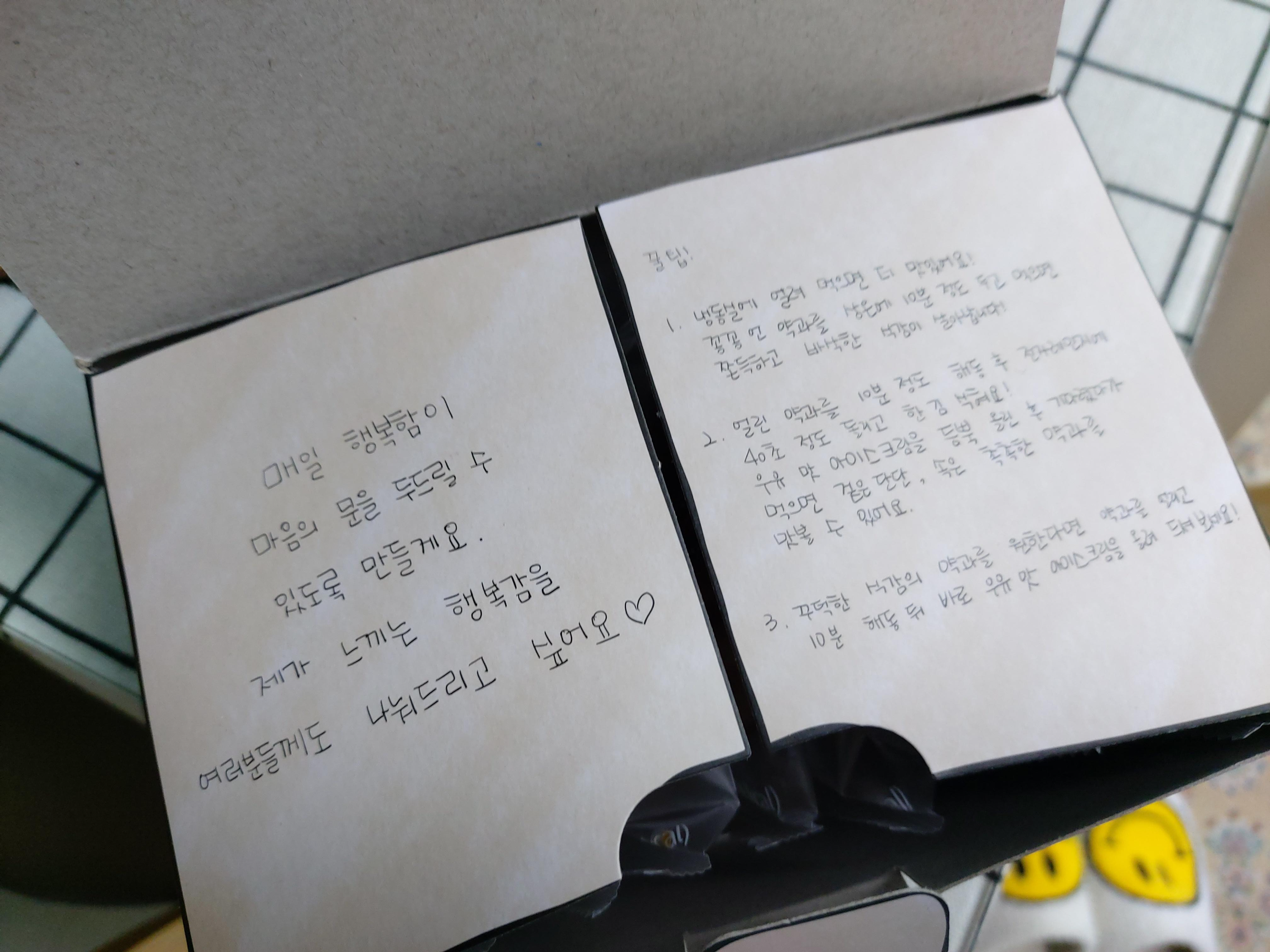 포장 박스 안에는 먹는 꿀팁이 적혀있습니다.