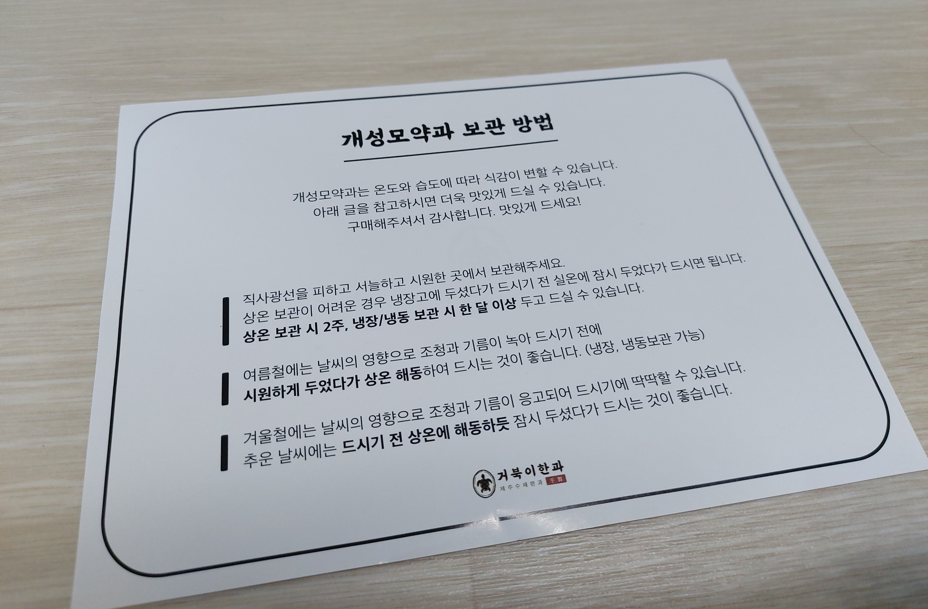여기서 거북이 한과 즉 개성모약과 보관 방법을 같이 넣어서 주십니다.