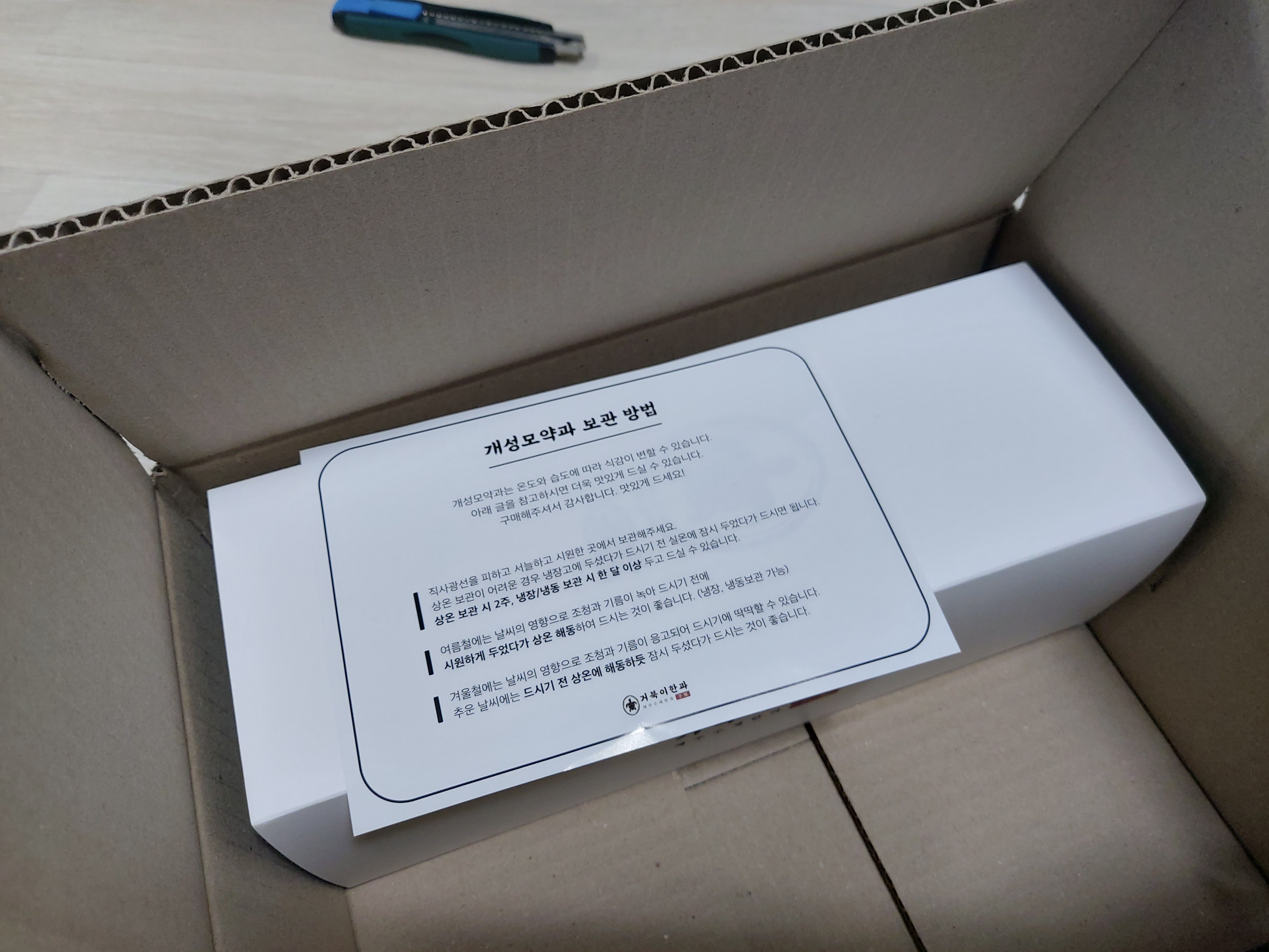 개성모약과는 온도와 습도에 따라 식감이 변할 수 있다고 합니다.