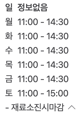 일요일 제외 딱 11시부터 3시 반까지 3시간 30분만 영업하는 식당