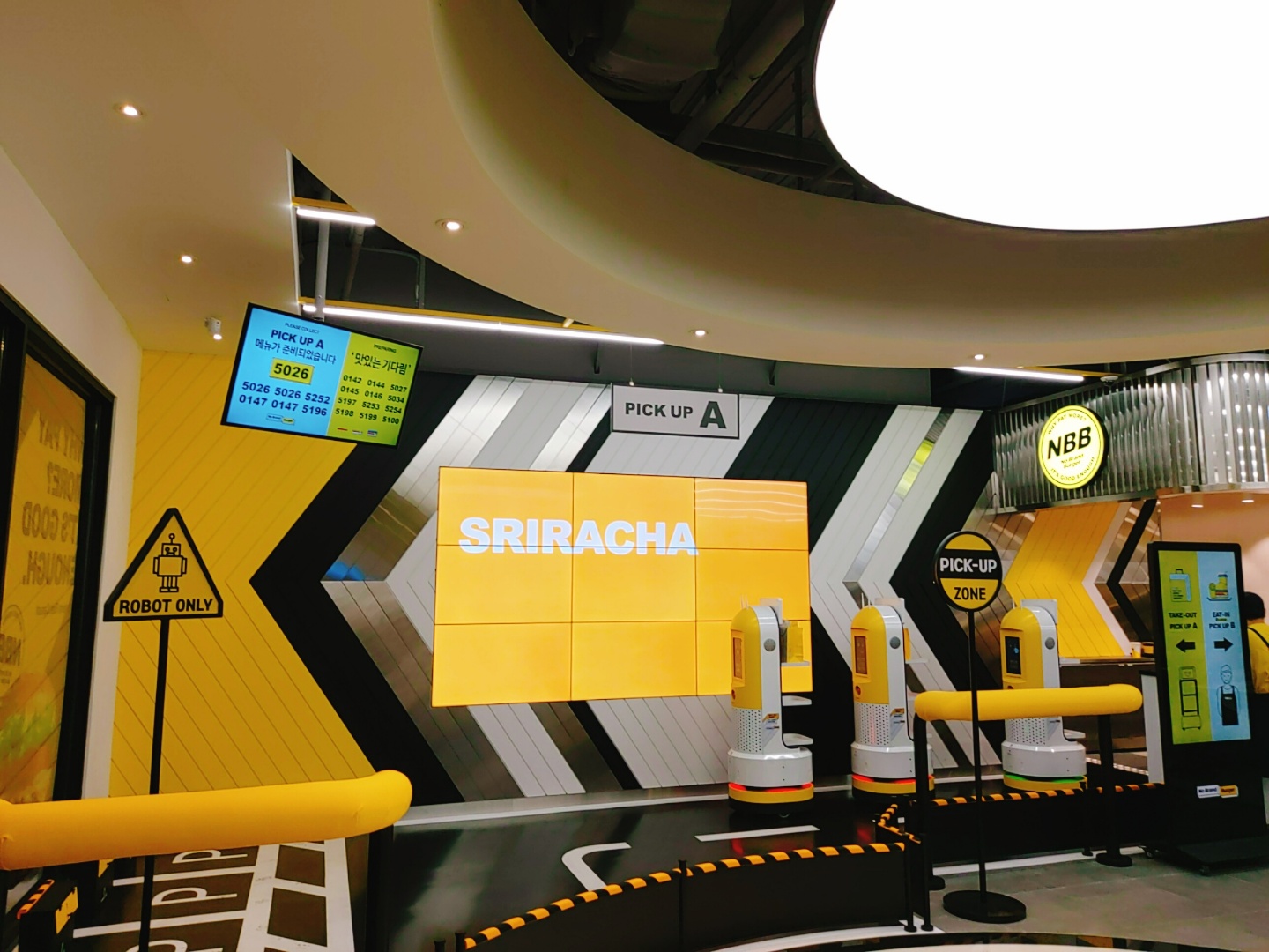 기계가 움직여서 포장된 음식을 가져오는 것이 매우 신기한 광경이었습니다.